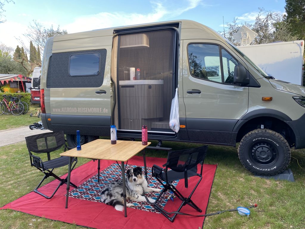 Unser Ziel: Campingplatz Camping Continental. Dort angekommen haben wir einen sehr schönen Stellplatz direkt an der Strandpromenade bekommen. Kurz aufgebaut – viel ist es ja nicht, dann mit Tammy einen längeren Spaziergang am See entlang gemacht und am Abend sind wir im Caprice 1971 lecker Essen gegangen und mit einem schönen Glas Rotwein in Italien angekommen.