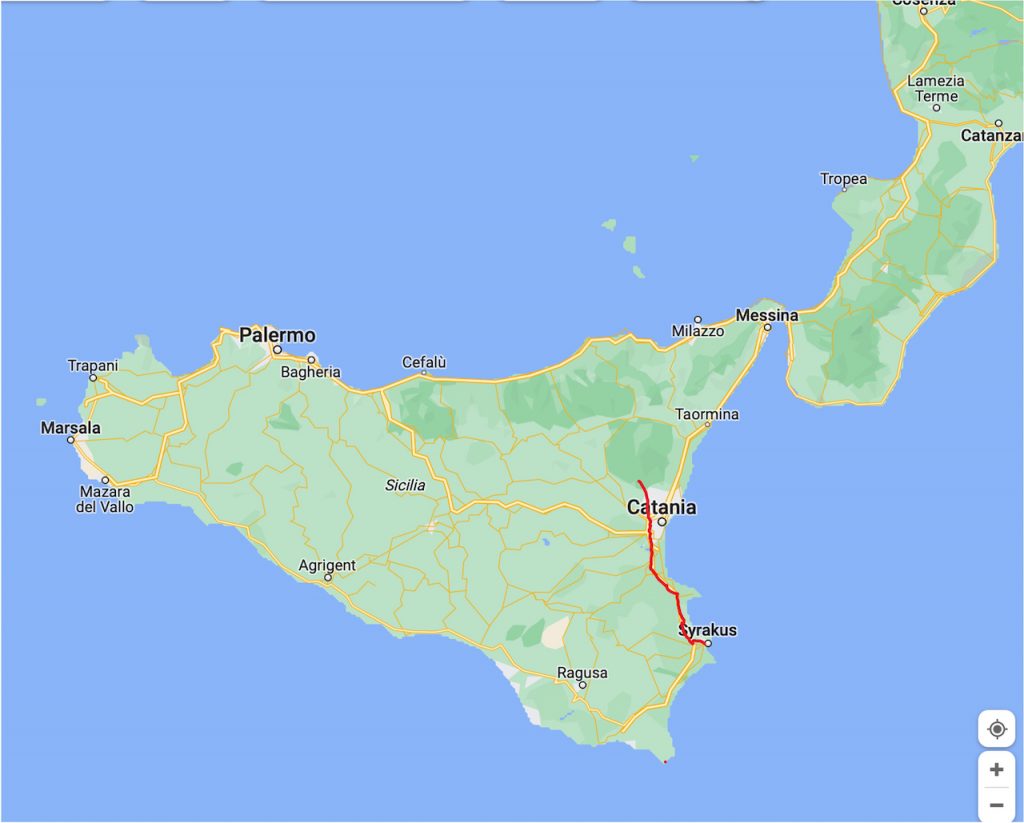 03.05.23 Wir wollten direkt die relativ kurze Strecke von knapp 80 Kilometer nach Nicolosi fahren. Nicolosi sollte der Ausgangspunkt für eine Wanderung auf den Ätna werden. Beim Packen haben wir dann aber leider festgestellt, dass uns die Räder für Tammys Fahrradanhänger fehlen. Nachdem wir auf dem aktuellen Campingplatz den Standplatz dem ersten Tag gewechselt hatten, war die Vermutung, dass wir bei dem Umzug, die Räder vergessen hatte. Also am alten Platz gesucht aber da waren keine Räder. Zu Sicherheit noch bei den Mülltonnen geschaut aber auch da waren die Räder nicht. Also war die Vermutung, dass wir die Räder an letzten Campingplatz vergessen hatten. Dort haben wir angerufen, aber das hat nichts ergeben, da der Typ kein Wort Englisch verstanden hat und dachte, wir wollen einen Platz buchen. Also sind wir nochmal zurück zum letzten Campingplatz Camping Carratois. Aber auch da waren die Räder leider nicht. Also sind wir dann mit einigem Umweg und ohne die Räder für Tammys Fahrradanhänger nach Nicolosi gefahren. Dort haben wir auf dem Campingplatz Mons Gibel eingecheckt. Nachmittags sind wir dann noch zur Station der Bergführer an der Liftstation am Ätna gefahren, um für den nächsten Tag eine geführte Tour auf den Ätna zu organisieren. Denn, ohne Bergführer darf man nicht höher als 2.500 Meter wandern.