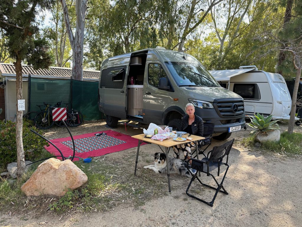 13.05.2023 Es regnete mal wieder. Wir nutzten den Tag, um den Standort zu wechseln und fuhren auf den Campingplatz Villagio Camping Capo Ferrato an der sehr schönen Costa Rei. Weil der Campingplatz sehr schön und gut war, der Strand sehr schön und es im Umfeld eine gute Infrastruktur gab, haben wir hier für 4 Nächte gebucht.