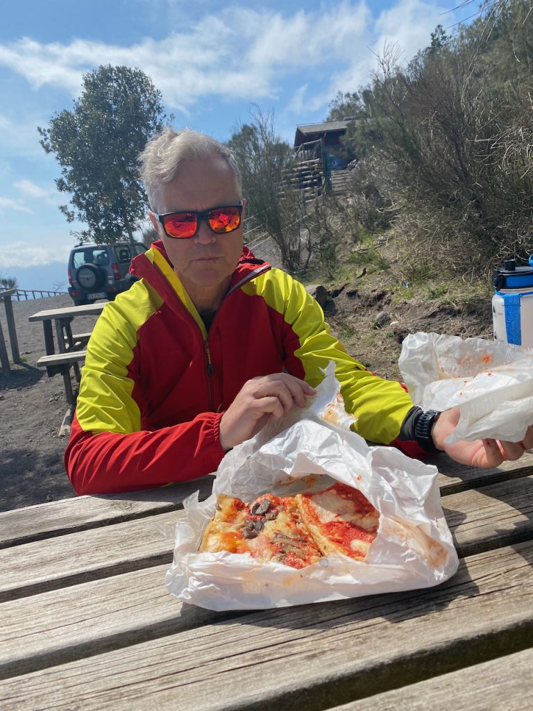 13.04.2023 Da der Wetterbericht für die nächsten Tage Regen ankündigt, nutzen wir den Tag für eine Wanderung auf den Vesuv. Für das letzte Stück auf den Kraterrand braucht man ein Ticket und diese für über eine Woche ausgebucht. Wir suchen uns eine Wanderung bei Koomot, welche in Ottaviano startet und in weiten Teilen dem Weg „Valle dell‘Inferno“ folgt. Über den Gipfel des alten Vulkans Monte Somma, aus diesem stammt der Vesuv, und die alte Caldera wandern wir bis zum Tickethäuschen. Wie zu erwarten, lässt man uns dort nicht weiter zum Gipfel wandern. Aber egal, wir hatten ein sehr schöne Wanderung bei strahlendem Sonnenschein. Abends waren wir in Pompeji lecker Abendessen.