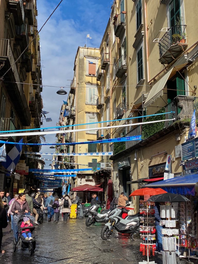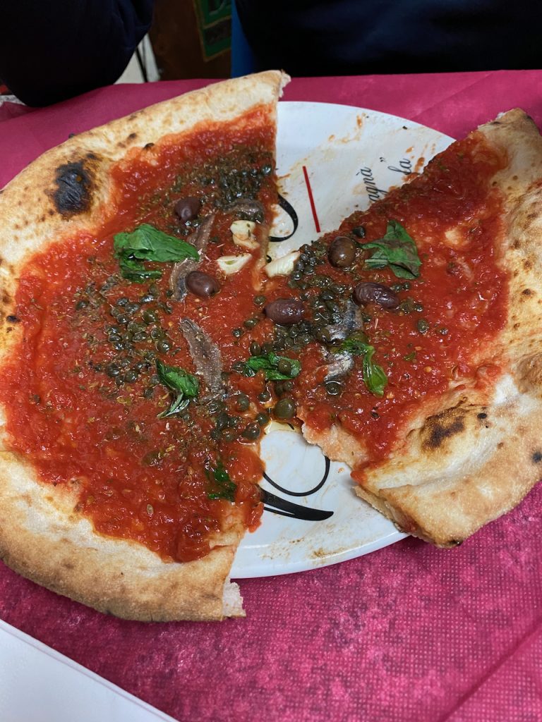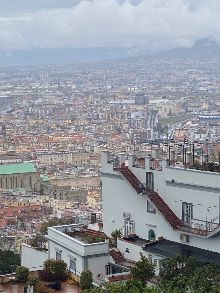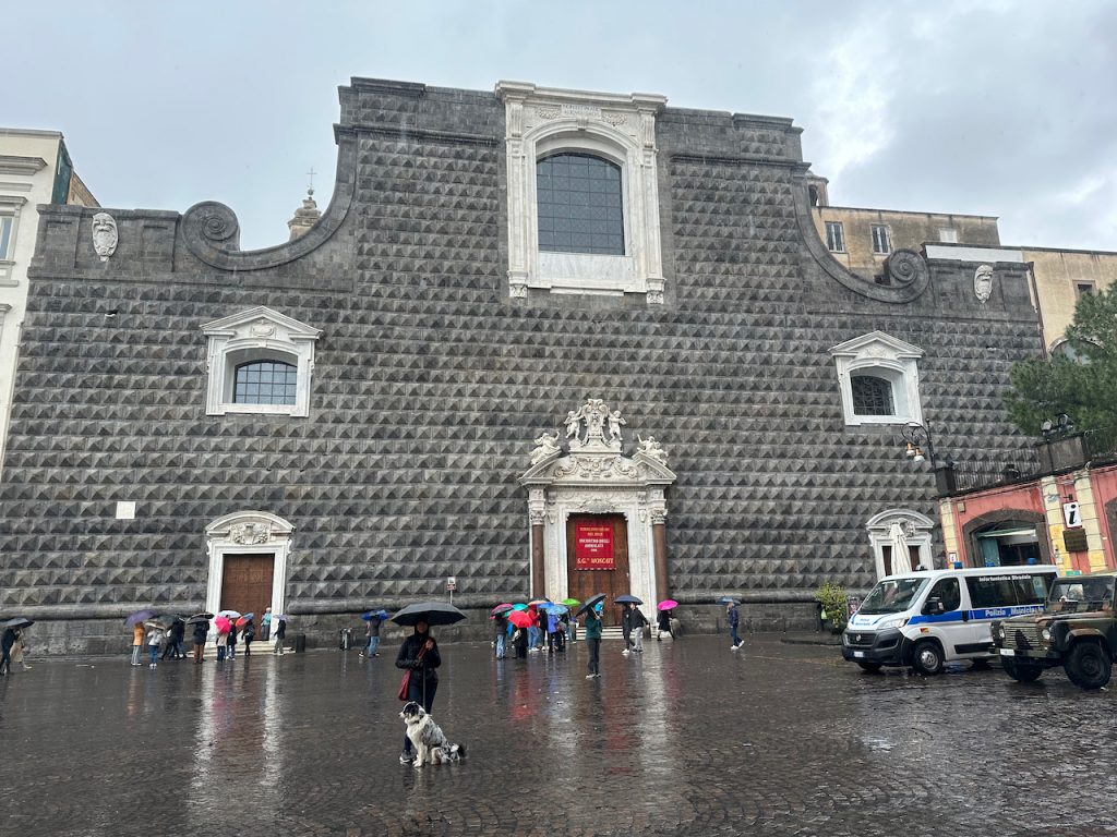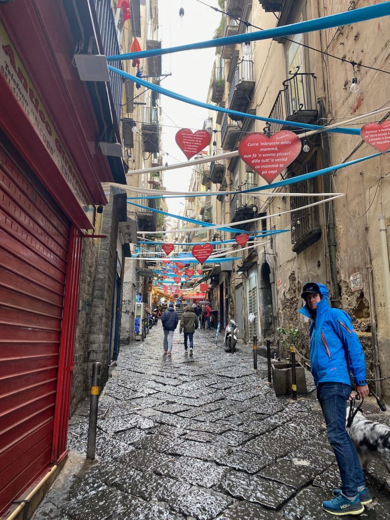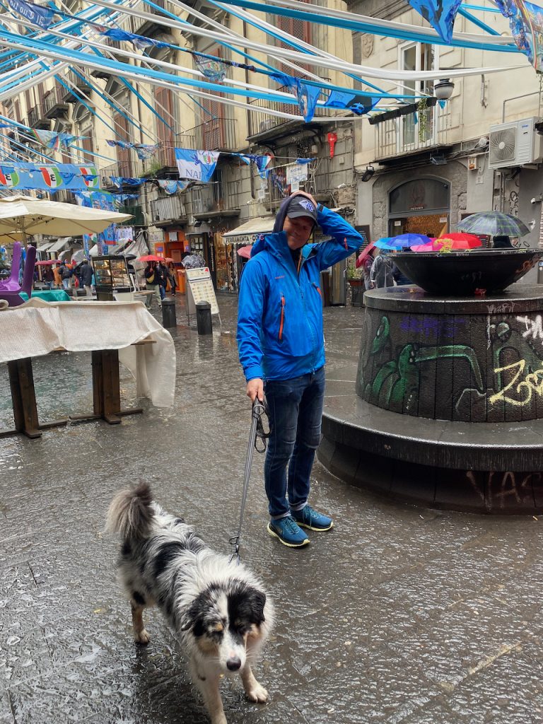 5.05.2023 Es hat wieder den ganzen Tag geregnet. Kein Hagel mehr und nicht mehr ganz so schlimme Regengüsse aber eigentlich hat es den ganzen Tag geregnet. Wir haben uns aber davon nicht beeindrucken lassen und sind am späten Vormittag nach Neapel gefahren, ausgestattet mit Sightseeing Tipps von Salvatore unserem Host am Campingplatz. Direkt am Hafen fussläufig zur Altstadt und den wesentlichen Sehenswürdigkeiten haben wir auch direkt einen Parkplatz gefunden, mega. Gestartet sind wir in der Altstadt, dort haben wir unter anderem auch die Kirche Gesu Nuovo besucht, dann durch das Spanische Viertel Quartieri Spagnoli. Von dort auf die Festung Castel Sant Elma und über die Piazza del Plebiscito wieder in die Altstadt. Dort haben wir natürlich eine Pizza gegessen und dann ging es wieder zurück nach Pompeji.