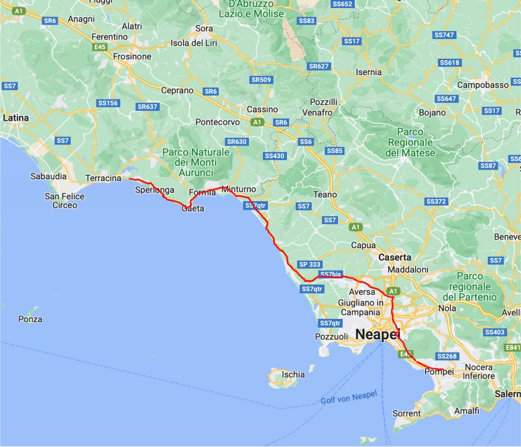 Am 12.04.2023 über das sehr schöne Städtchen Gaeta nach Pompei gefahren. Unser Stellplatz ist auf dem Agricamper Pompei Tenuta Lura. Die Zufahrt zum Campground ist etwas eng aber der Platz ist sehr schön und wir können zu Fuß zu den Ausgrabungsstädten und in die Stadt.