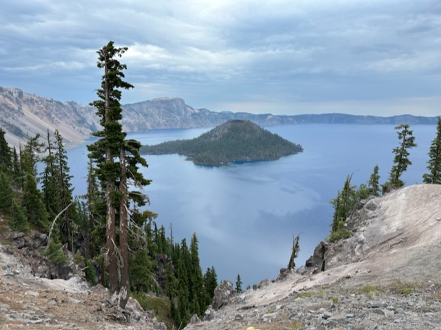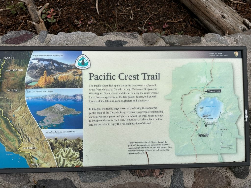 17.08.2023 Wir sind direkt morgens zum Crater Lake Nationalpark gefahren. Da der nordöstliche Teil des Rim Drives gesperrt war, konnten wir keine komplette Runde um den See fahren. Wir sind dann über diverse Aussichtspunkte erst den Rim Drive bis Cleetwood Cove und dann umgedreht und bis zum Phantom Ship Overlook gefahren. Durch den Crater Lake NP verläuft der Pacific Crest Trail (PCT). Von einem Trailhead an der North Entrance Road sind wir auf diesem ca. 2,5 Stunden Richtung Norden gewandert, dabei haben wir auch einen Thru Hiker getroffen.