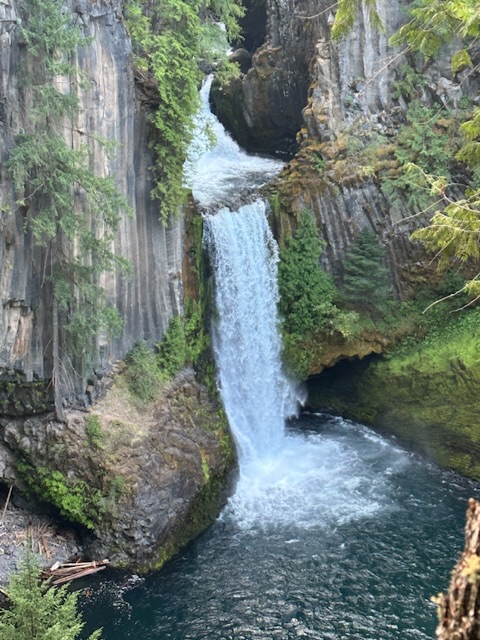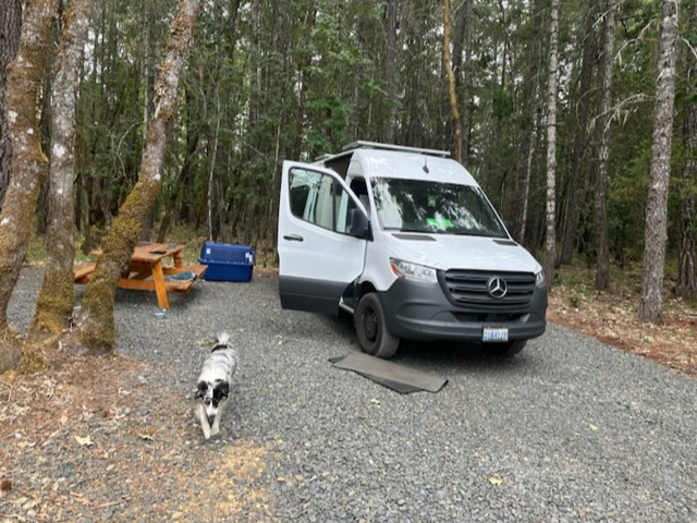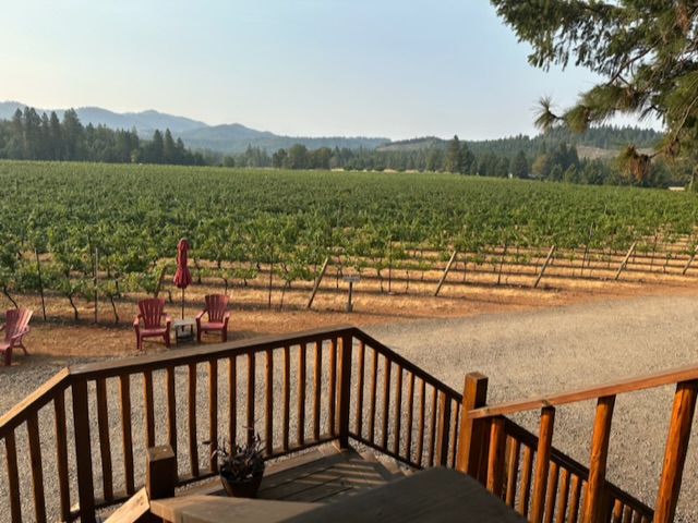 18.08.2023 Nach einer kurzen Gassirunde am See sind wir früh morgens über den Highway 138, dem sehr schönen Rogue-Umpqua Scenic Byway, durch den Umpqua National Forest in Richtung Westen zur Küste gefahren. An den Toketee Falls haben wir einen Stop eingelegt und den kurzen Spaziergang zu dem Wasserfall gemacht. Auf dem HW 138 ging es bis weiter bis Roseburg und dann auf die Interstate 5 nach Süden bis Grants Pass. Nachdem alle Vorräte weitestgehend aufgebraucht waren, haben wir dort einen Stop bei Walmart eingelegt und eingekauft. Von dort wollten wir über den Highway 199 nach Crescent City an der kalifornischen Küste. Auf ca. der Hälfte der Strecke wurden wir dann jedoch durch eine Straßensperre der Feuerwehr aufgehalten. Der Highway war durch Waldbrände gesperrt. Um nach Crescent City zu kommen, mußten wir wieder bis nach Grants Pass zurück, um von dort nach Gold Beach in Oregon an die Küste zu kommen. Ein Umweg von ca. 250 Meilen. Da es schon ca. 16.00 Uhr war und ich schon viel gefahren war, wollte ich mir das nicht mehr antun. Nach wenigen Meilen auf dem Rückweg nach Grants Pass kamen wir an einem Weingut, dem Augustino Estate vorbei. Ich habe einfach mal mein Glück versucht und tatsächlich hat man mir einen Stellplatz für die Nacht auf dem Weingut angeboten. Mega.