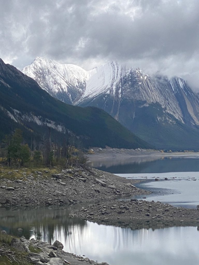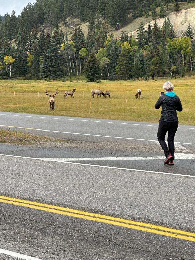 20.09.23 Da es an dem Tag noch bewölkt war und für die nächsten Tage aber Sonnenschein vorhergesagt war, haben wir entsprechend Aktivitäten im Tal geplant und uns die Berge für die kommenden Tage aufgespart. Wir sind zum Maligne Canyon und sind den dortigen Trail zur Fifth Bridge gewandert. Auf der Fahrt haben wir mehrfach Wapiti Hirsche beim Grasen gesehen. Mit einem kurzen Fotostop am Medicine Lake sind wir dann zum Maligne Lake gefahren und sind dort den Mary Schäffer Loop gewandert. Dort lag schon der erste Schnee, offensichtlich hatte es in den höheren Bergen in der Nacht geschneit. Nachdem wir auf dem Wapiti Campground nur einen Stellplatz für eine Nacht bekommen hatten, sind wir abends auf dem Whistler Campground eingecheckt (ist quasi nur über die Strasse). Dort haben die Wapiti Hirsche seelenruhig auf Campground, keine 10 m vom Camper entfernt gegrast. Nachdem es am Vorabend so lecker war, sind wir wieder ins Syrahs Of Jasper und haben dort Smoked Salmon Crostini, Quebec Duck Breast und Alberta Bison Tenderloin gegessen, lecker war’s.