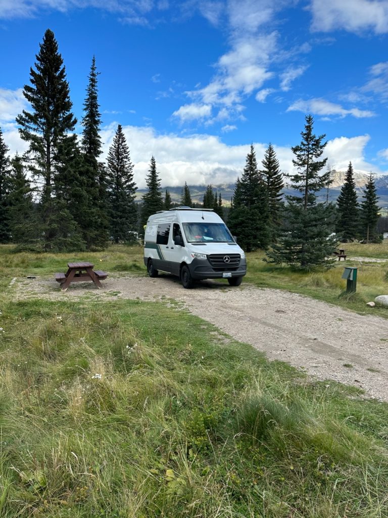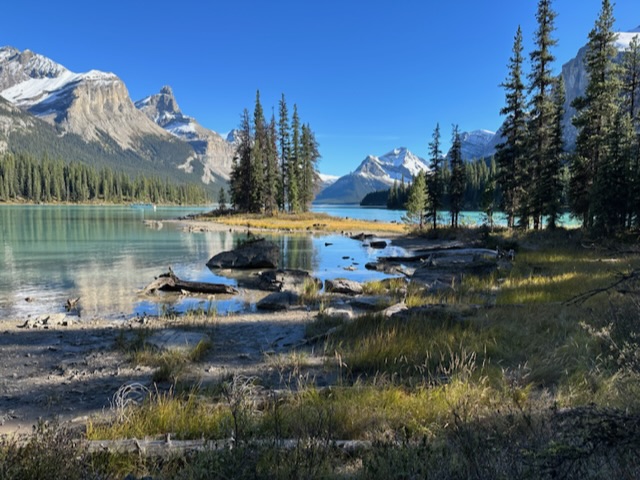21.09.23 Nachts war es unter null Grad kalt aber bereits am Morgen hat die Sonne geschienen und das blieb den ganzen Tag so. Wir sind vormittags zur Jasper Skytram gefahren und dort mit der Seilbahn auf die Bergstation des Mount Whistler. Dort hatte es in der Nacht davor nochmal geschneit und es lagen gut 10 cm Schnee. Wir sind dann den Trail zum Gipfel gegangen. Danach sind wir nochmal zum Lake Maligne gefahren, um dort die Bootstour zur Spirit Island zu machen und vom Boot die wunderbare Aussicht auf die Rocky Mountains zu genießen. Abends sind wir wieder auf den Wapiti Campground und haben dort auch noch einen Stellplatz für die nächste Nacht bekommen. Da es schon recht spät war und wir ordentlich Hunger hatten, haben wir uns schnell eine Pasta im Camper gekocht.