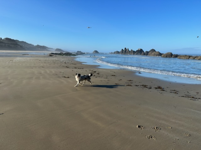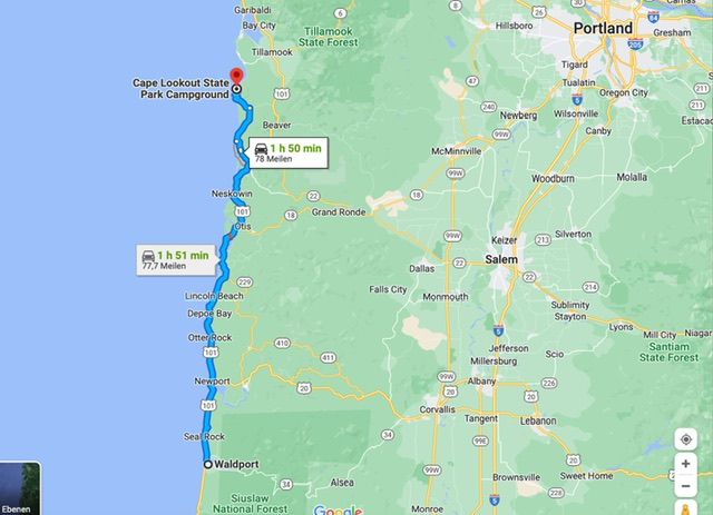 22.08.23 Da wir gerade auf einem der schönsten Abschnitte der Küste und des Oregon Coast Highways (HW101) unterwegs waren, haben wir uns für diesen Tag nur eine kurze Strecke von ca. 80 Meilen vorgenommen. Der erste Stop war schon nach wenigen Meilen im schönen Fischerort Newport. Danach ging es zum Agate Beach, wo wir einen Strandspaziergang gemacht haben. Weitere tolle Spots waren die Yaquina Head Outstanding Natural Area mit dem Yakina Bay Lighthouse, das Devils Punchbowl (leider bei Ebbe und somit ohne röhrende Geräusche) und Depoe Bay (wo wir vom Strand Wale gesehen haben). Der letzte Ländern Stop war dann in Lincoln City. Kurz danach sind wir vom HW 101 (welche dann einige Meilen nicht an der Küste entlang führt) auf den sehr schönen Three Capes Scenic Drive abgebogen und haben dann auf dem wunderschönen, direkt am Strand gelegenen Cape Lookout State Park Campground eingecheckt. Beim Check In habe ich noch schnell Feuerholz für das abendliche Lagerfeuer (ungelogen, bei jedem RV, Camper oder Zelt brennt abends ein Lagerfeuer) eingekauft und dann haben wir einen langen Spaziergang am Strand gemacht.