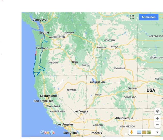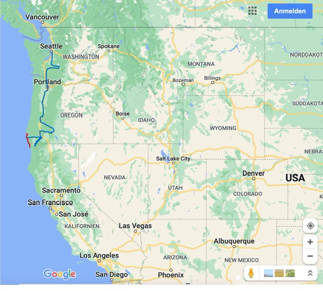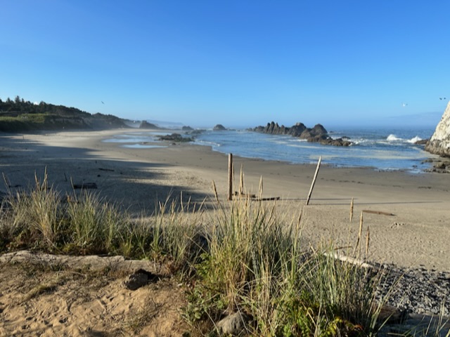 21.08.2023 Da wir an dem Tag ca. 150 Meilen die Küsten nach Norden bis Waldport fahren wollten und unterwegs neben diversen Fotostops noch ein Stück auf dem Oregon Coast Trail und den John Dellenback Dunes Trail wandern wollten, sind wir früh aufgestanden und zeitig losgefahren. Neben diversen Fotostops und den beiden kleinen Wanderungen haben wir noch in Reedsport leckeren Thunfisch und Lachs fürs Abendessen eingekauft. Übernachtet haben wir auf dem KOA Campground in Waldport.