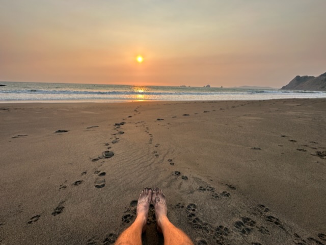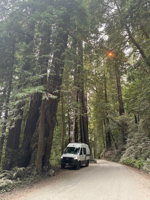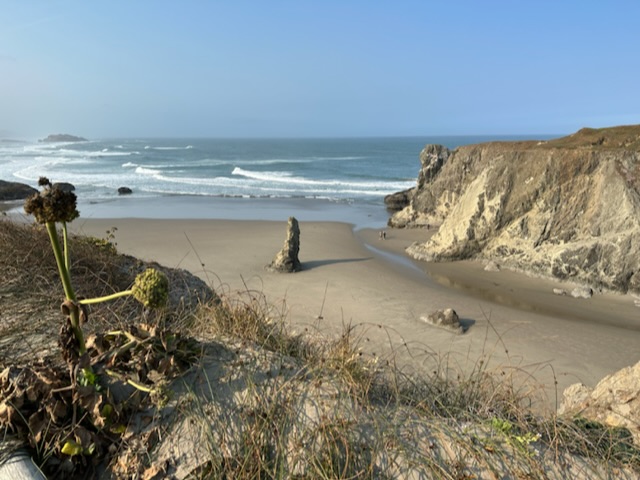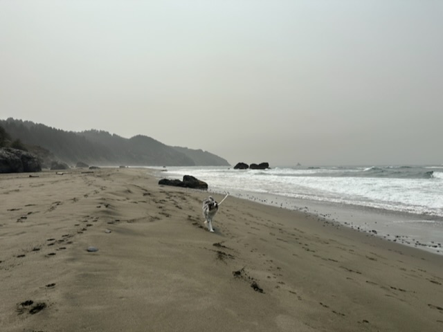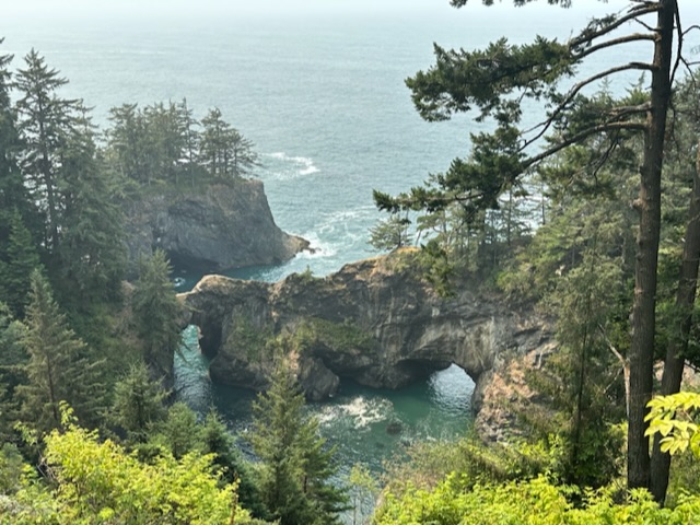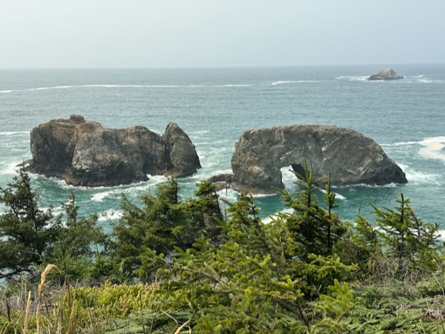 Die Redwoods waren sehr schön und beeindruckend. Danach sind wir die wieder zurück auf den Highway 101 um wieder zurück nach Oregon zu fahren, dabei ging es die Küste entlang immer in Richtung Norden. Übernachtet haben wir auf dem Humbug Mountain State Park Campground. Auf der Fahrt haben wir immer wieder Stops gemacht, um uns die grandiose Küstenlandschaft anzuschauen und Spaziergänge zu den Stränden zu machen. Besonders tolle Spots waren Natural Bridges, Secret Beach und Arch Rock. Eigentlich war strahlender Sonnenschein bei wolkenlosem Himmel, durch den Rauch der nahen Waldbrände war es jedoch wie bewölkt.