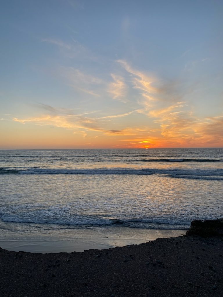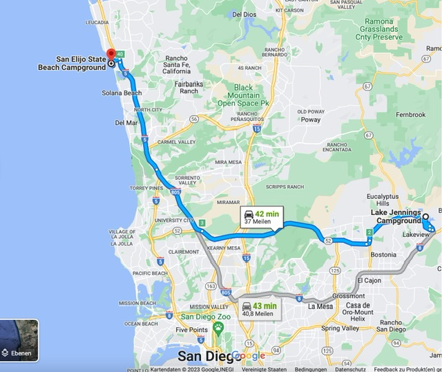 26.10.23 Wir sind knapp 40 Meilen in den Küstenort Encinitas gefahren. Dort hatten wir für eine Nacht einen Platz auf dem San Elijo State Beach Campground reserviert. Der Campground liegt zwar direkt an der Küstenstraße und an einer Bahntrasse aber eben auch direkt am Strand. Wir haben den Nachmittag mit Standspaziergängen und lesen am Strand verbraucht und nachdem wir den sehr schönen Sonnenuntergang bestaunt hatten, sind wir ins Restaurant Pacific Coast Grill zum Abendessen.