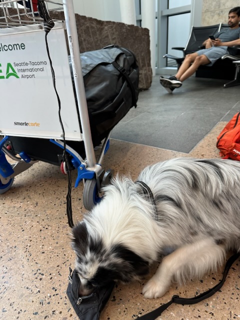 Nach 10,5 Stunden Flug und den üblichen Einreiseformalitäten konnte ich Tammy dann in Seattle wohlbehalten wieder in Empfang nehmen. Tammy hat sich riesig gefreut und es ging ihr aber augenscheinlich gut. In Seattle war es Ortzeit immer noch Freitag 11.08.23 ca. 13.30 Uhr. Mit dem Taxi sind dann direkt ins Hotel Kimpton Vintage, haben dort eingecheckt und dann erstmal einen großen Spaziergang im Olympic Sculpture Park gemacht. Dann hat Uwe erstmal im Supermarkt Hundefutter gekauft und Tammy durfte fressen. Abends waren wir dann an der Waterfront in „Ivar‘s Salmon House“ zum Abendessen.